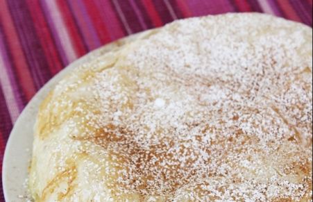 Este plato, propio de la gastronomía marroquí, consiste en un pastel de láminas de pasta filo relleno de carne de pollo desmigada junto con cebolla, almendra molida, agua de azahar, especias y luego espolvoreado con canela en polvo y azúcar glas, dándole un punto dulce al que no estamos acostumbrados pero que resulta especialmente agradable.