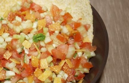 Ensalada típica libanesa muy sencilla de preparar. Sus ingredientes básicos son: tomate, pepino y hierbabuena fresca.
