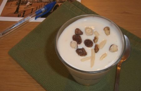 Hoy vamos a preparar una receta sencilla y fresquita. Ideal para el verano. Crema helada de yogur y frutos secos. Es una copa que se sirve fría, un postre lleno de energía, muy recomendable para recuperarse tras un día de playa. Los elementos principales son el yogur, sano y refrescante, y la miel, que nos va a ayudar a recuperar la energía.