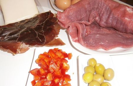 Hoy vamos a preparar una receta de carne, un rollo relleno de queso y cecina. Hace tiempo preparamos uno con bacon y queso, el proceso es muy parecido. Es un plato sin mucha dificultad y que admite muchos rellenos. Esta vez le daremos un toque con aceitunas para darle un toque vistoso.