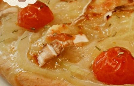 Focaccia de cebolla, tomates cherry y queso de cabra