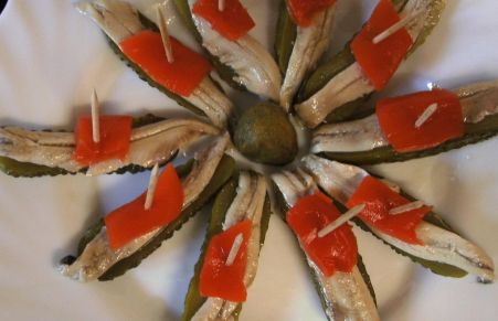Tapas de pepinillos con boquerones