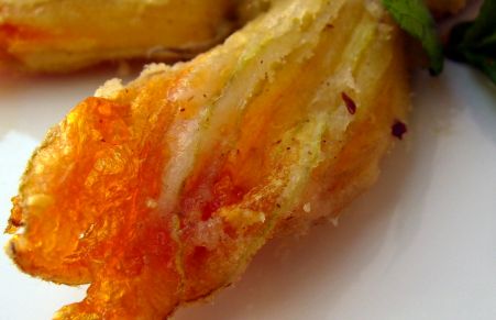 Flores de calabacín crujientes rellenas de queso