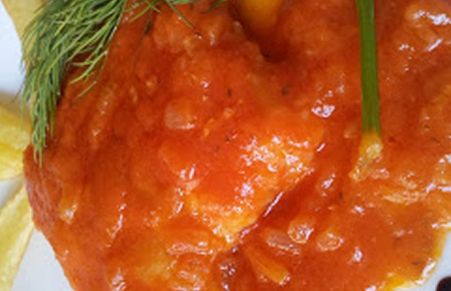 Bacalao en salsa de cebolla y tomate