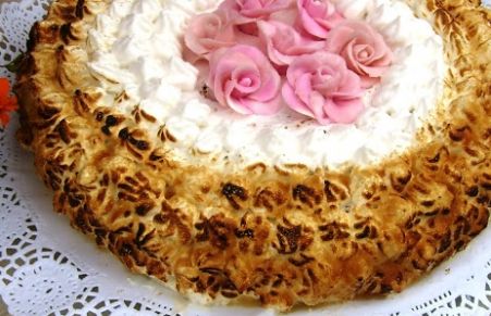Tarta de merengue italiano tostado con crema de almendras