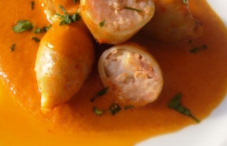Busca todas las fotos que hemos recibido para esta receta de Chipirones rellenos de gamba con salsa picante.