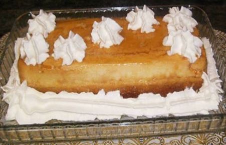Una mezcla de bizcocho con flan que es una delicia, se cuecen juntos y ellos se separan en el horno