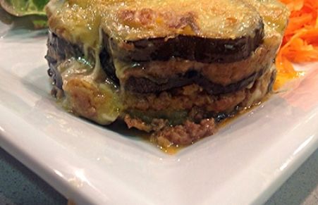 Berenjenas con carne picada y bechamel al horno