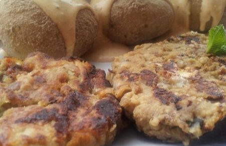 Hamburguesas de berenjenas con papas arrugadas al mojo picón