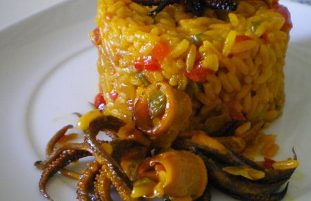 Arroz con tentáculos de calamar
