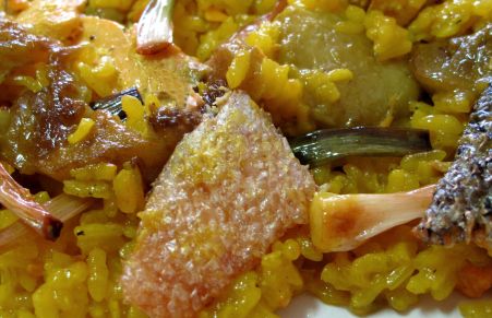 Todos conocemos las bondades de los dos ingredientes principales que intervienen en esta paella, el salmón, un pez con una carne sabrosa, y la berenjena, un producto de nuestra huerta que tanto juego da en multitud de recetas. Con ellos creamos una combinación novedosa en el mundo de nuestros arroces, que consigue abrir nuevos horizontes en las paellas. Importante la aportación de los ajos tiernos.