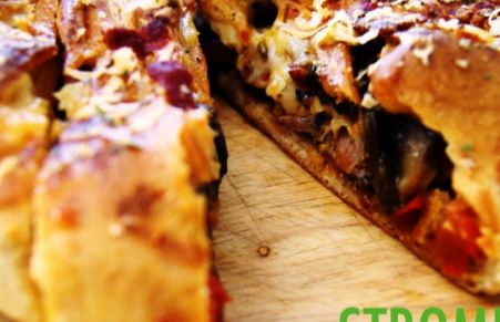 El Stromboli o Estrómboli en castellano (Struògnuli en Siciliano), además de ser un volcán de una pequeña isla con el mismo nombre ubicada en un archipiélago al norte de la costa siciliana en el mar Tirreno, es un híbrido entre pizza, calzone y/o empanada, es hecha tradicionalmente con masa de pizza y comúnmente rellena de carnes italianas como la capicola, pepperoni, muffuletta, salami, salchichas frescas de cerdo de gran calidad y gran porcentaje de carne, mínimo un 85%,… varios quesos y vegetales. Su origen no es italiano, más bien fue creada en los Estados Unidos, su creador fue un italiano, Nazzareno Romano y lo creó en su restaurante, el Romano´s Italian restaurant & pizzeria en las afueras de Philadelphia allá por el año 1950 y recibiendo su nombre por la reciente película estrenada en la época, nombre sugerido por un amigo de Don Nazzareno, que tuvo mucho exito y pasó a engrosar la larga lista de comidas del recetario italo-americano, también otros reclaman la autoría desde plato, como un tal Mike Aquino del Mike´s Burger Royal, donde, este lo vendía como un sándwich en la ciudad de Spoken, Washington, que también nombró así a su sándwich por la película. Hacerlo no tiene mayor dificultad que hacer una pizza, aunque algo más de paciencia, se acostumbra comer como tal o como un tentenpié rápido en un take away donde se vende en porciones y que podrás ir comiendo mientras llegas a tu destino.