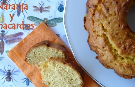 Bizcocho horneado en molde bundt con un almibar de zumo de naranja y deliciosos anacardos que le dan un sabor muy original