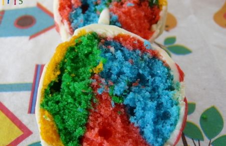 Cake pops horneados con diveritidos colores, cubiertos de chocolate blanco