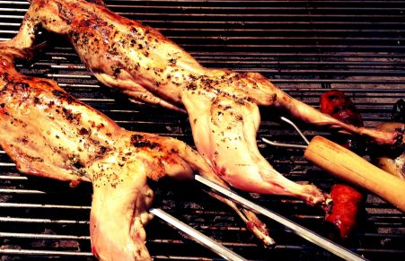 De carne blanca, magra y textura tierna, asada en la parrilla queda muy sabrosa, además de ser una de las carnes más saludables que consumimos, con muy poca grasa y es fuente de vitaminas (B3, B12, es la principal fuente de vitamina B3 entre las carnes, y de vitamina B12 después de la carne de jabalí, minerales (potasio, fósforo y calcio) y proteínas de calidad. Carne perfecta para acompañar con alioli, que le aportará intensidad. Si sabes la tabla de multiplicar del cero, seguro que sabes asar unos conejos a la parrilla.
