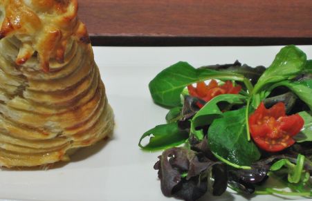 Berenjenas en hojaldre rellenas de carne picada y setas
