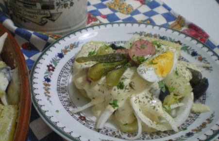 La Kartoffelsalat (traducido del alemán: ensalada de patatas) es uno de los platos más conocido de la gastronomía alemana.Es un plato cuya base principal son las patatas acompañadas de diferentes ingredientes dependiendo de la zona de Alemania en la que se elabore.En el sur se sirven acompañada de una vinagreta y en el norte de mayonesa.