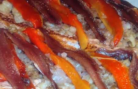 Tosta de berenjena asada con anchoas y alioli de pimentón