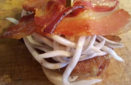 Busca todas las fotos que hemos recibido para esta receta de Pincho burgalés con berenjena, gulas y panceta.
