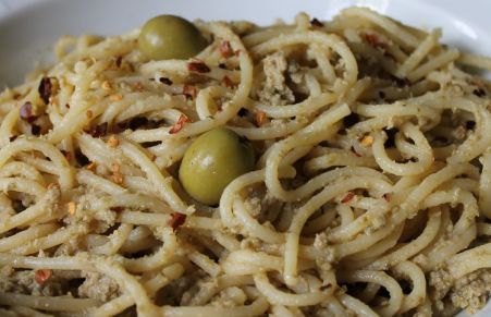 Busca todas las fotos que hemos recibido para esta receta de Spaghetti con pesto alla pantesca.