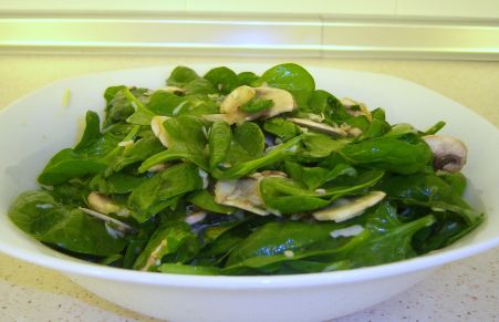 Ensalada de champiñones y espinaca fresca