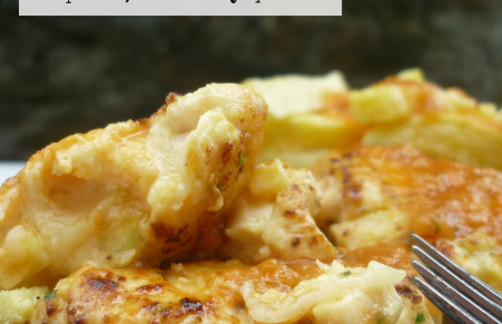 Minihamburguesitas de pollo, manzana y queso en salsa