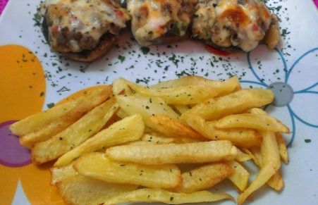 Busca todas las fotos que hemos recibido para esta receta de Champiñones rellenos y papas fritas.