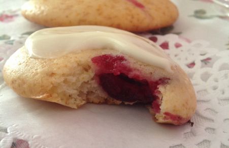 Galletas bizcochitos de yogur con cerezas y frosting de limón