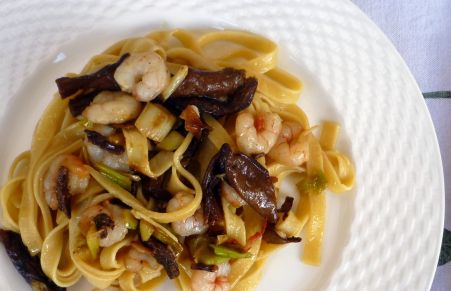 Tagliatelle con Boletus, Ajetes y Gambas