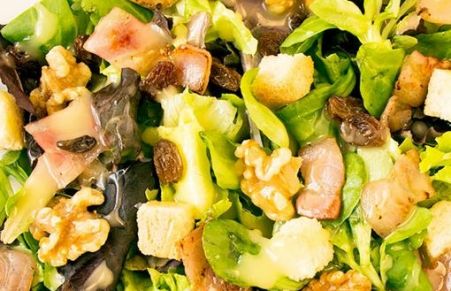 Nos encanta esta ensalada y se ha convertido en una de nuestras favoritas desde que la preparamos. Resulta muy fácil de hacer en casa y la mezcla de sabores (nueces, beicon, miel y mostaza) hace que esté riquísima. Además tiene una textura tan crujiente que ... nos encanta!!!