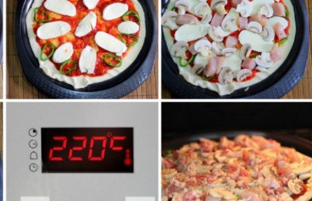 Pizza de pollo y tocino con champiñones