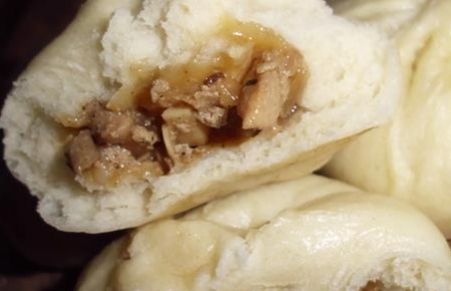 Baozi es un pan relleno de cerdo con verduras bien picadito y hecho al vapor.