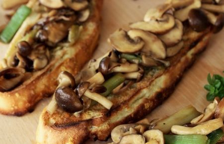 Tostas de setas y ajos tiernos con salsa de soja
