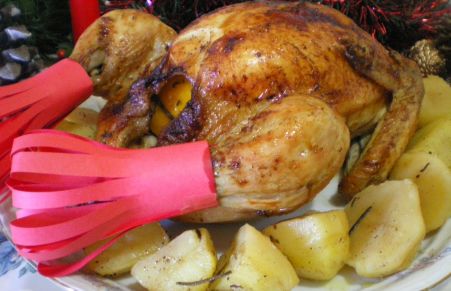 Un plato clásico de lo más festivo ideal para Navidad y delicioso acompañado de unas patatas asadas y especiadas con tomillo y romero.Esta receta nos resulta más económica que elaborarla con pato y otro añadido es que el pollo suele gustar más a los peques que otro tipo de aves.