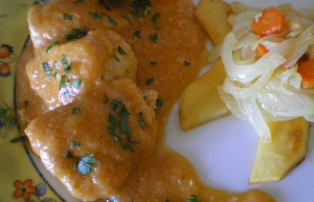 Delicioso plato de contrastes agridulces.Por un lado el pollo se dora con miel y pimienta y por otro, a la salsa de cebollas y tomate se le incorpora mostaza para darle el toque ácido de la receta.