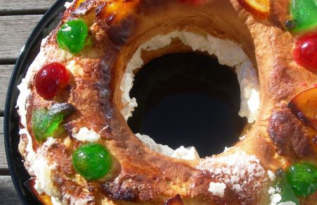 Es el típico Roscón de Reyes que comemos en Catalunya, casi siempre relleno de nata o crema pastelera