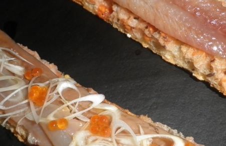 Tosta de boquerón marinado con frutos rojos y vinagre de módena