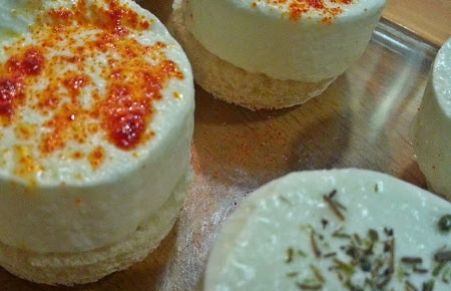 Canapés de rulo de queso de cabra con tomillo y pimentón