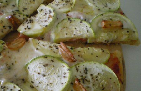 Pizza de calabacín y mozzarella con aceite de albahaca