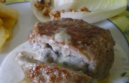 Una receta para los amantes de los sabores fuertes y una sobremesa distendida, para deleitarnos con un buen vinito de la tierra.Estas hamburguesas nos guardan una sorpresa de lo más sabrosa en su interior, queso roquefort, que hace un contraste de lo más picantón con el sabor de la carne picada.Acompañadas de unas patatas, fritas lentamente en aceite de oliva, hacen de esta receta un plato ideal para tomarlo como segundo, o como plato único, ¿por qué no?.