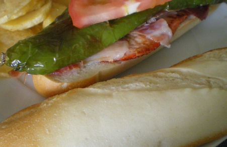 El serranito es una pieza de pan pequeña o mediana a la que se le van añadiendo un filete de lomo de cerdo, una loncha de jamón serrano, un pimiento verde frito y una rodaja de tomate.