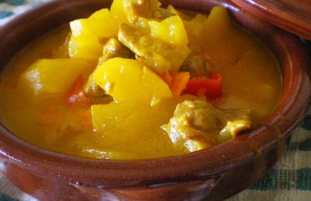 Patatas guisadas con carne en salsa