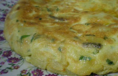 Tortilla de patatas con cebollas y pimientos