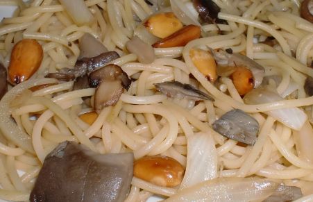 Una receta sabrosa, nutritiva y fácil de hacer... ESPAGUETIS CON SETAS Y ALMENDRAS