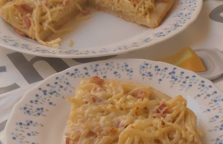 Busca todas las fotos que hemos recibido para esta receta de Pizza de spaguettis a la carbonara.