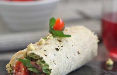 Crujiente de parmesano con carpaccio de ternera y vinagreta de mostaza