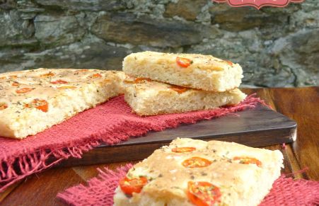 Focaccia de cherrys y orégano