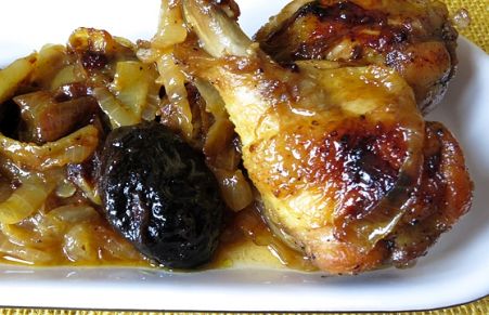 Muslos de pollo con ciruelas pasas y salsa de jerez