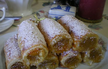 Un dulce rápido, delicioso y la mar de vistoso: unos tronquitos elaborados con hojaldre congelado y rellenos de cabello de angel y picatostes de naranja confitada.Los presentamos con un esparcido de azúcar glass y canela y voilá: un atractivo dulce que podemos presentar como colofón a una comida navideña o en cualquier otra ocasión, y lo mejor de todo solo os llevará 20 minutos su elaboración.