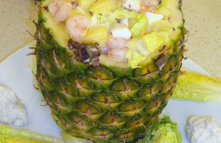 Este es un entrante que destaca por el contraste dulce de la piña combinada con el salado del marisco.